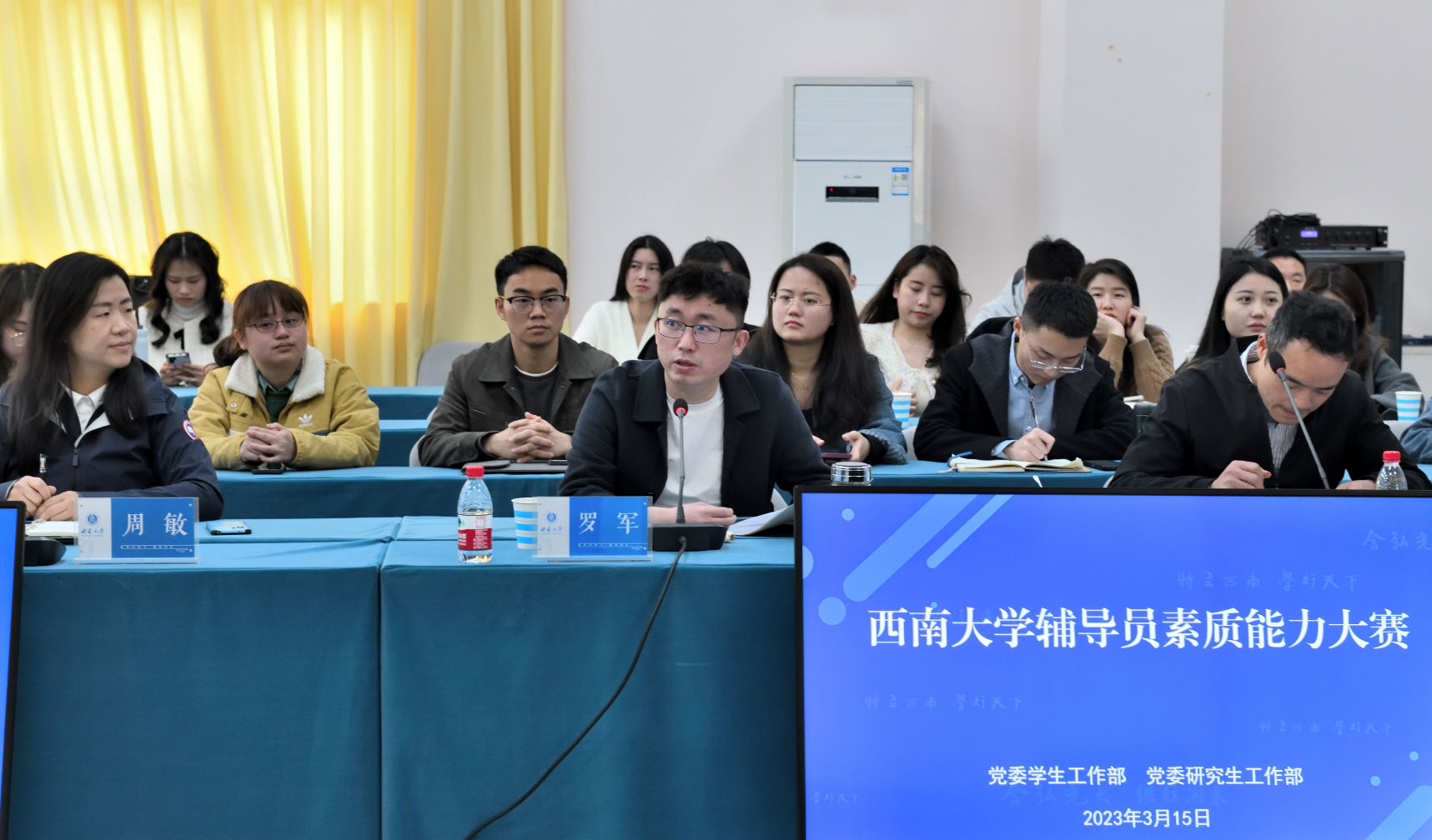 为学习宣传贯彻党的二十大精神,持续推进思想政治工作队伍内涵式发展315日上午9点,Betway必威西汉姆联官方网站辅导员素质能力大赛在第二学生活动中心420教室举办。出席本次比赛的评委有:党委研究生工作部副部长周敏党委学生工作部副部长、学生工作处副处长罗军、团委副书记罗亮、招生就业处副处长陈渝。比赛由化学化工学院辅导员刘肖杉老师主持。