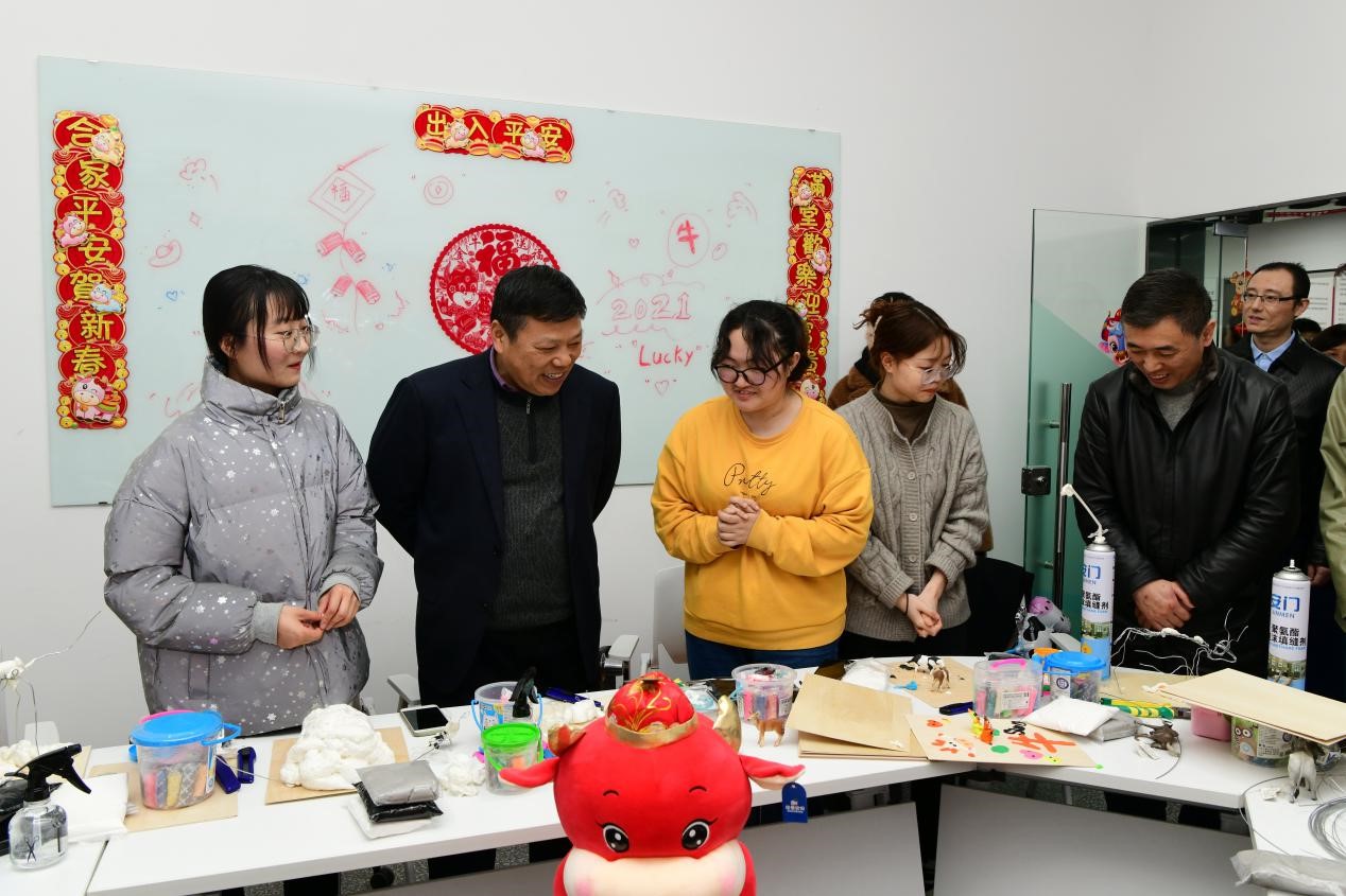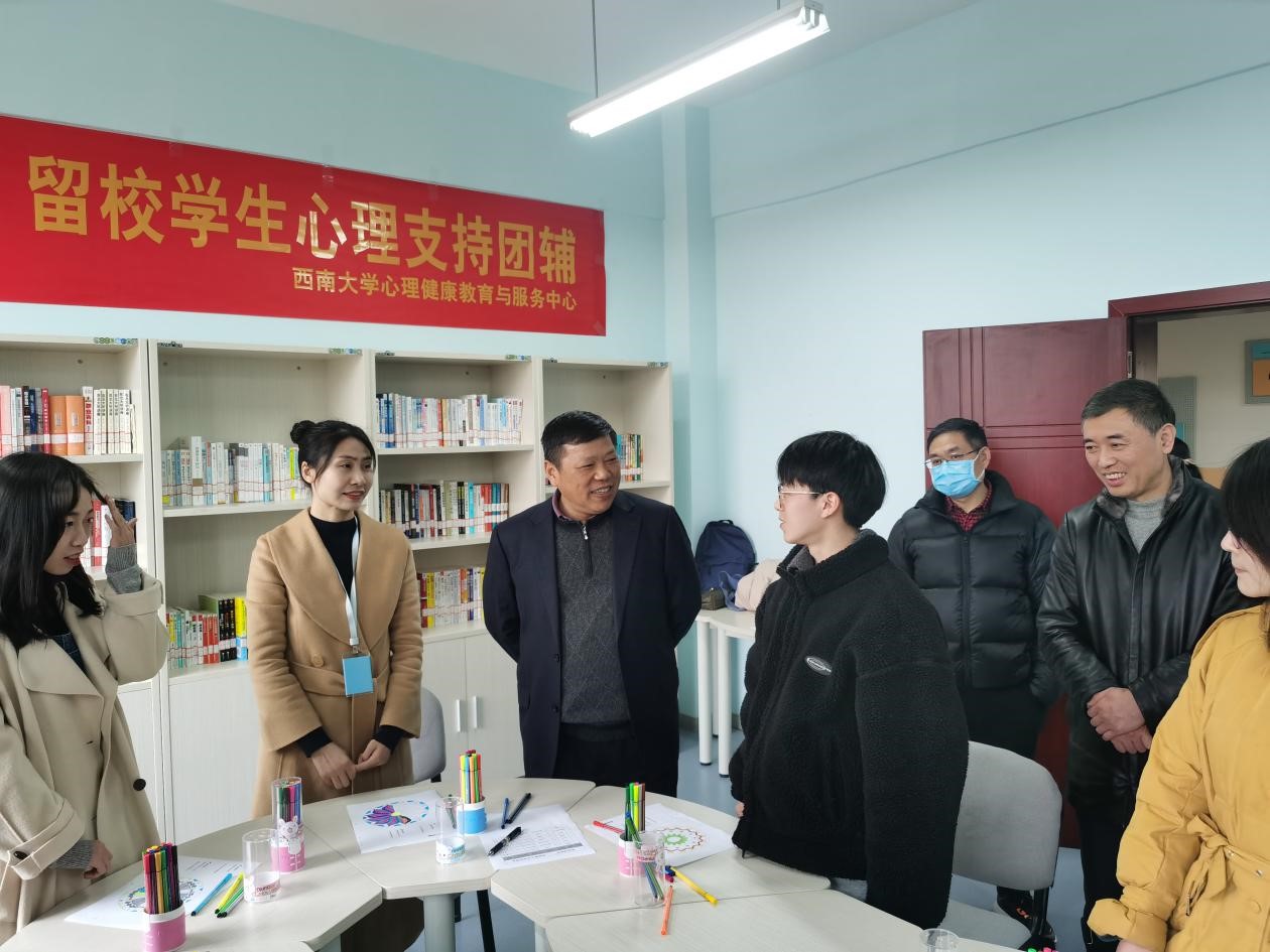 在学校心理健康教育与服务中心,张卫国校长详细了解为留校学生提供心理关爱与支持的相关举措,并与正在参加“我们在一起,幸福迎新春”支持性团辅、“乐融年味”沙盘明心团辅等系列主题活动的同学亲切交流,认真询问同学们留校期间的学习生活状况,并向同学们送上新春祝福。