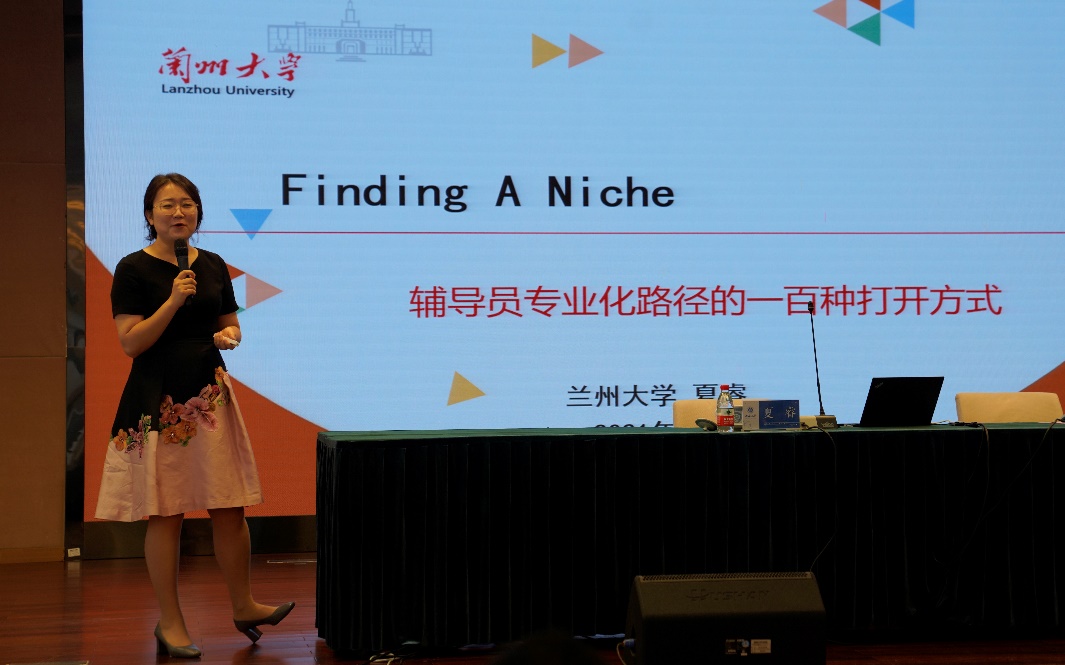 夏睿副教授以“Finding A Niche:辅导员专业化的一百种打开方式”为主题,围绕辅导员专业化“为什么”“如何做”“做什么”三方面进行了分享,鼓励辅导员培养好五种思维、锻炼好四种能力、处理好三组关系、坚持好两个导向,强调辅导员专业化要学会懂得、学会感恩、学会借‘势’,本着一颗初心、朝着一个目标、爱着一群学生、做着一件事情。