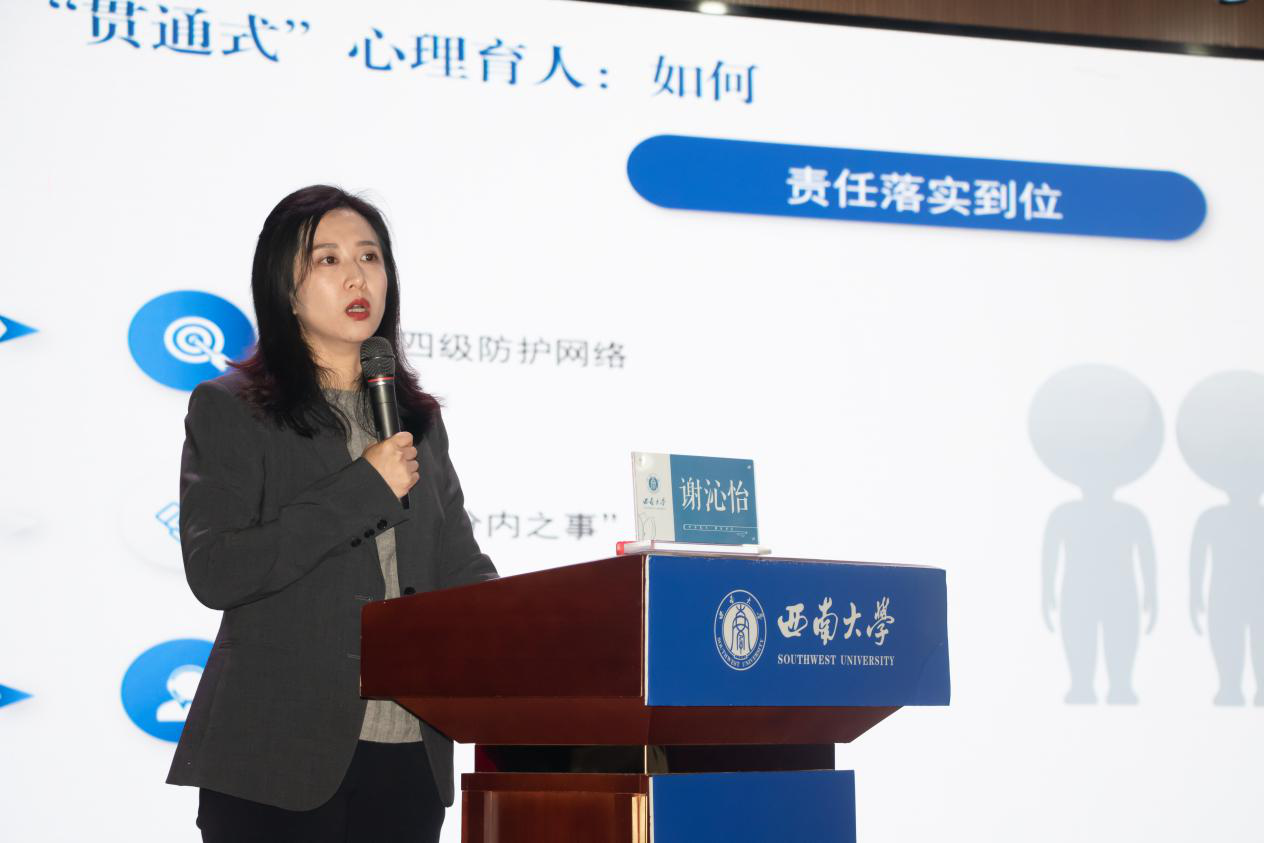 党委学生工作部 学生工作处 武装部部(处)长孙楚航,党委学生工作部 学生工作处副部(处)长、心理健康教育与服务中心主任谢沁怡分别就“辅导员队伍建设”、“‘贯通式’’心理育人”与全体副书记、辅导员作了工作交流。