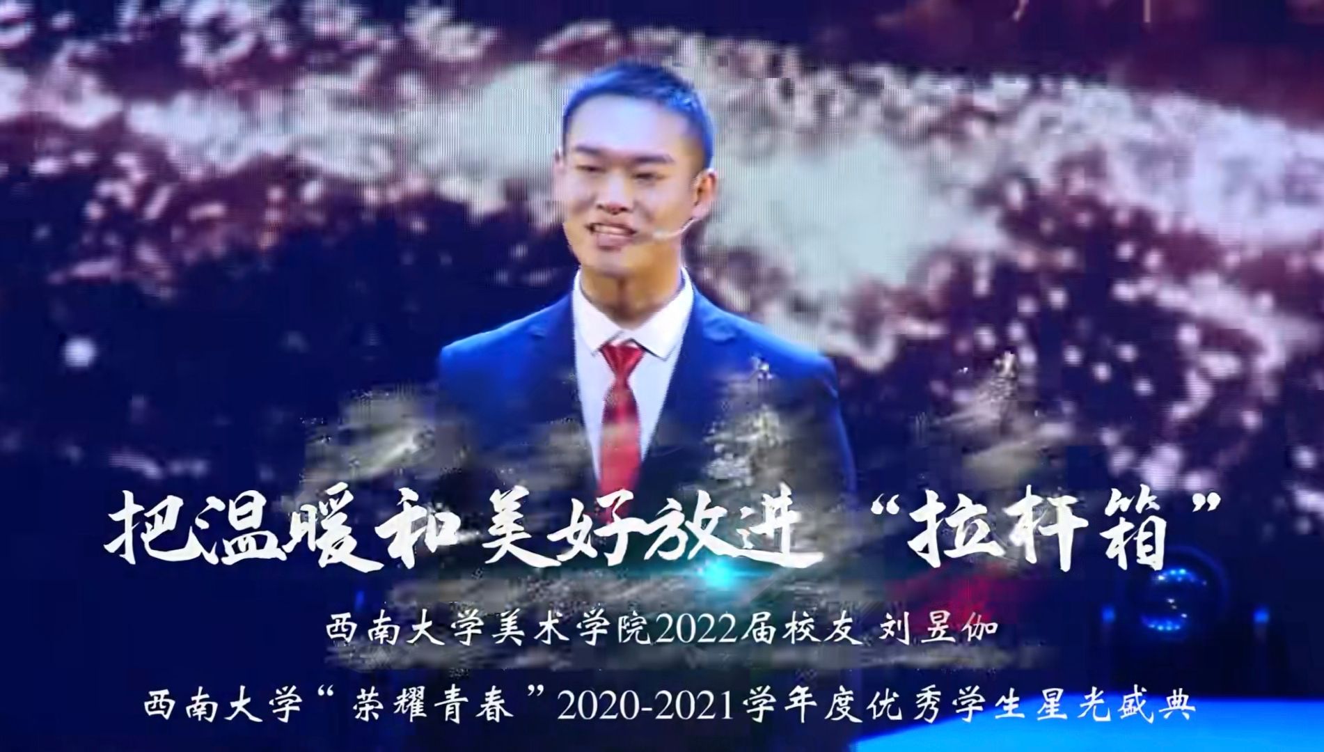 “二十大与我的人生路”西大青春故事分享会(三)分享人:Betway必威西汉姆联官方网站美术学院2022届校友 刘昱伽分享题目:《把温暖和美好放进“拉杆箱”》视频来源:Betway必威西汉姆联官方网站“荣耀青春”2020-2021学年度优秀学生星光盛典