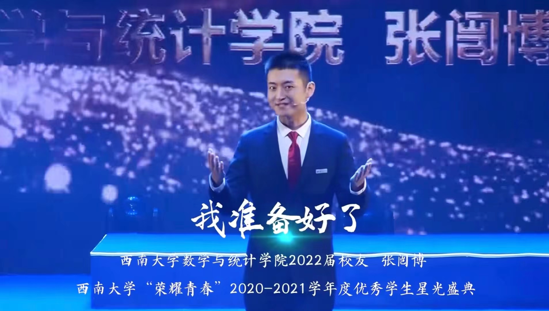 “二十大与我的人生路”西大青春故事分享会(四)分享人:Betway必威西汉姆联官方网站数学与统计学院2022届校友 张闿博分享题目:《我准备好了》视频来源:Betway必威西汉姆联官方网站“荣耀青春”2020--2021学年度优秀学生星光盛典