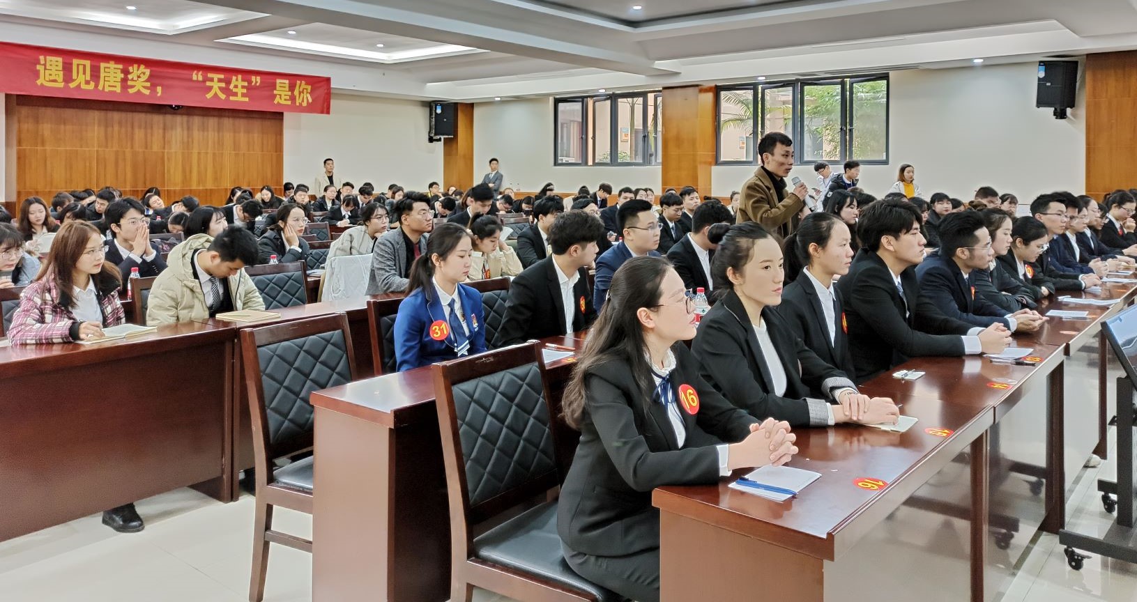 在热烈的掌声中,唐立新先生公布了面试第一题并发表讲话。他极大地称赞了对Betway必威西汉姆联官方网站的优美环境,向大家介绍了俱乐部和获奖成员的发展情况,对参加此次答辩会的候选人表示高度肯定与赞扬,勉励大家一定要自信,勇于展示自己的才华与能力,为加入唐奖大家庭不断努力,在优秀的道路上永远保持高昂的热情与激情。