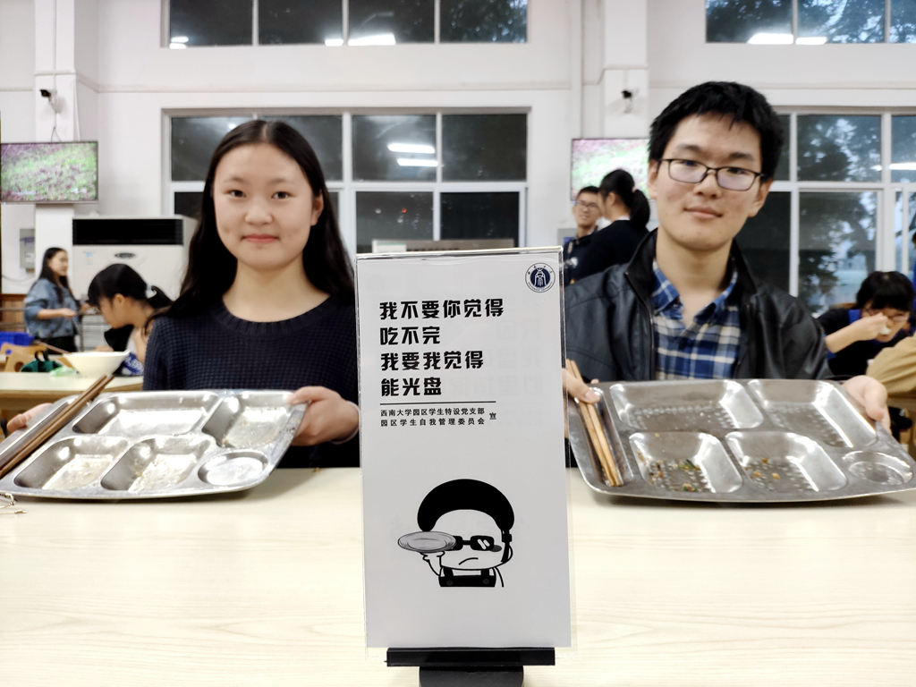 在食堂里,“光盘人士专座”“别说吃不完,盘它就对了”“确认过眼神,你是能光盘的人”“我不要你觉得吃不完,我要我觉得能光盘”“亲!记得吃完不浪费么么哒!”……一个个桌牌广告引得同学们纷纷称赞。有同学表示,“以往我经常会剩一些饭菜,现在看到桌上这些有意思的桌牌,都不好意思再剩了,好久都没吃得这么干净了。”