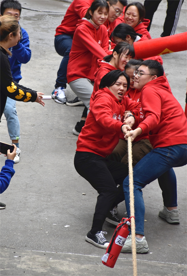 在学生园区文化广场和学生宿舍楼,“爬楼灭火”赛跑、“抢灭火器”拔河比赛、消防装备整理比赛等趣味项目吸引了来自不同学院的同学纷纷参与。“原来拧着灭火器从一楼快速冲到六楼会有这么累,也头一次感受到消防员灭火的辛苦,向消防战士致敬”,来自大一年级的林鸿栩同学这样说道。
