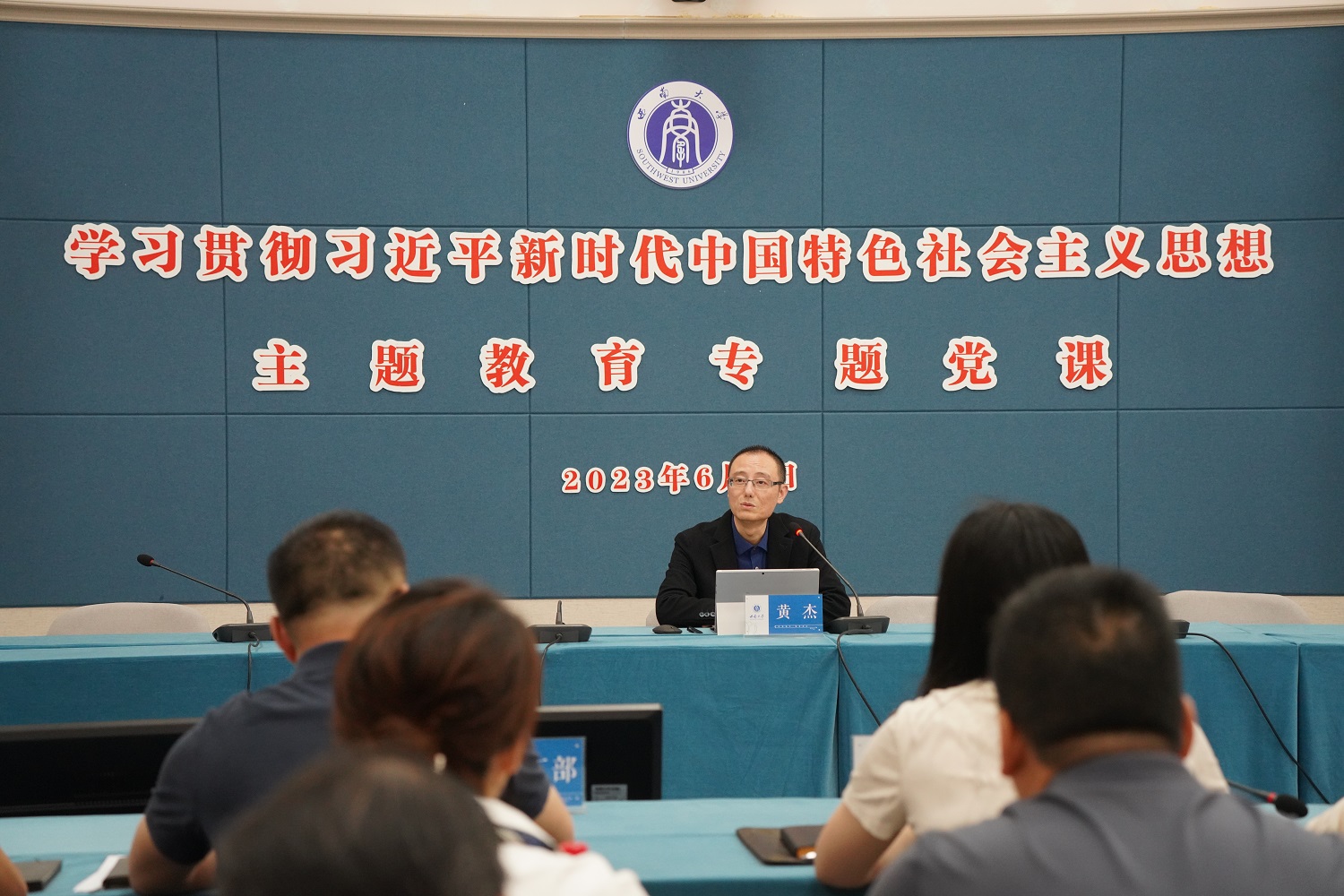 为持续推动学习贯彻习近平新时代中国特色社会主义思想主题教育走深走实,6月1日,学校党委副书记黄杰以《深刻领会习近平总书记关于高校思想政治工作的重要论述,推动学生思政工作高质量发展》为题讲授专题党课。党委宣传部、党委研究生工作部、党委学生工作部、团委、招生就业处等职能部门有关负责人,学校各学院(部)党委副书记参加党课学习。