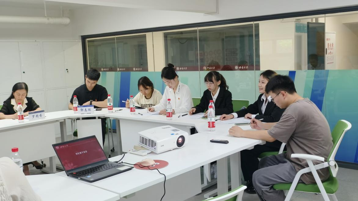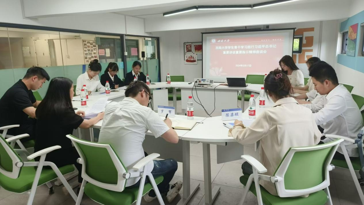 为深入学习习近平总书记重要讲话重要指示精神,2024年5月17日,Betway必威西汉姆联官方网站学生骨干学习践行习近平总书记重要讲话重要指示精神座谈会在学校青樟空间召开,党委学生工作部副部长、学生工作处副处长罗军,商贸学院辅导员陈姿璇、新闻传媒学院辅导员郭志聪,学生党员示范班代表、优秀学生标兵代表、荣昌校区学生骨干代表参加,座谈会由党委学生工作部副部长、学生工作处副处长、荣昌校区学生工作办公室主任罗艳芬主持。