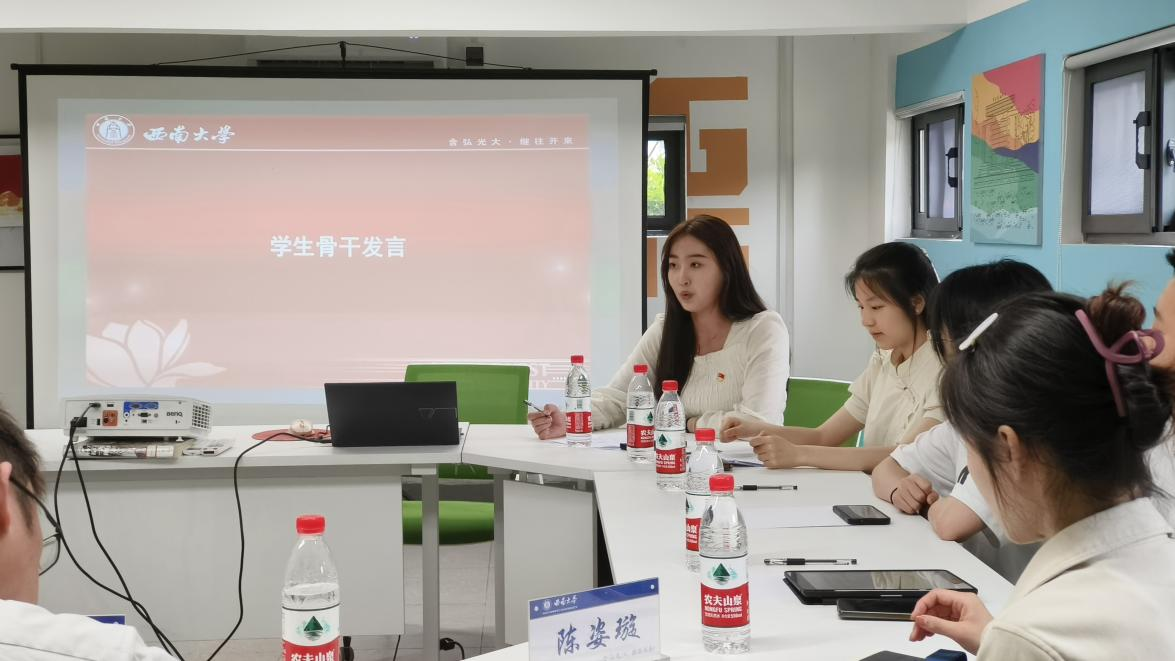 与会师生代表分别结合自身学习、工作、生活进行了学习心得分享,并围绕新时代青年学生肩负的使命任务展开了热烈讨论。来自文学院、数学与统计学院、植物保护学院、蚕桑纺织与生物质科学学院、动物科学技术学院、动物医学院、水产学院的学生骨干代表纷纷表示,要当好一名人民教师,立志做大先生、潜心做大学问、努力育大英才;要充分运用农科专业知识,担当作为,为重庆高水平建设山清水秀美丽之地、高质效建设美丽中国先行区贡献自己的力量。两位辅导员分享了在一线开展日常思想政治教育的体会,并表示在习近平总书记重要讲话重要指示精神的指引下,潜心育人的底气更足、步伐更坚定、斗志更昂扬,接下来将继续努力当好学生成长成才的人生导师和健康生活的知心朋友。