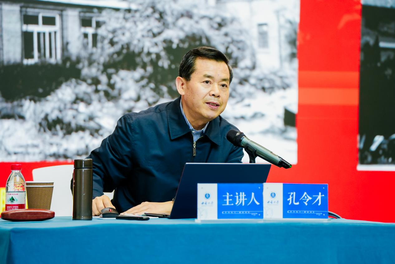 孔令才以真挚动人的讲述和丰富的历史影像,带领师生回顾了“两弹一星”事业的辉煌历程,深刻阐释了“热爱祖国、无私奉献、自力更生、艰苦奋斗、大力协同、勇于登攀”的“两弹一星”精神内涵。他从钱学森、邓稼先、郭永怀等科学家的感人事迹,到林俊德院士生命最后时刻仍坚守岗位的动人片段,再现了那段艰苦卓绝却光辉熠熠的岁月。孔令才鼓励青年学子思考“我们从哪里来,要到哪里去”,牢记嘱托,内化于心,外化于行,树立“强国有我”的志向,勤学笃行、追求卓越,努力成为堪当民族复兴重任的时代新人,奋力书写为中国式现代化挺膺担当的青春篇章。