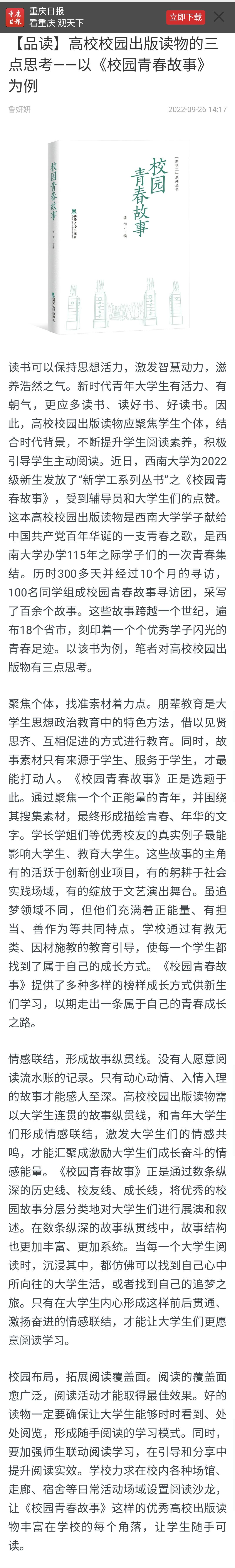 【品读】 高校校园出版读物的三点思考——以《校园青春故事》为例