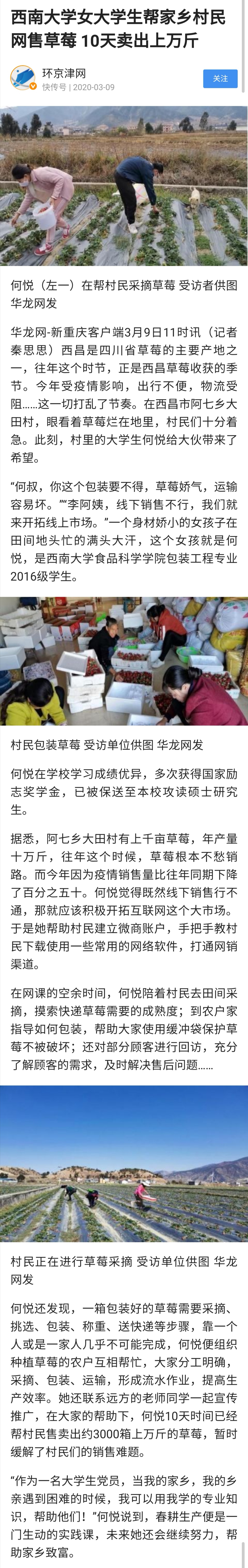 Betway必威西汉姆联官方网站女大学生帮家乡村民网售草莓 10天卖出上万斤