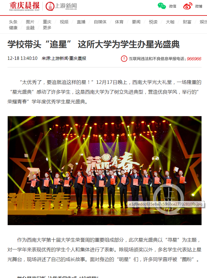 学校带头“追星” 这所大学为学生办星光盛典