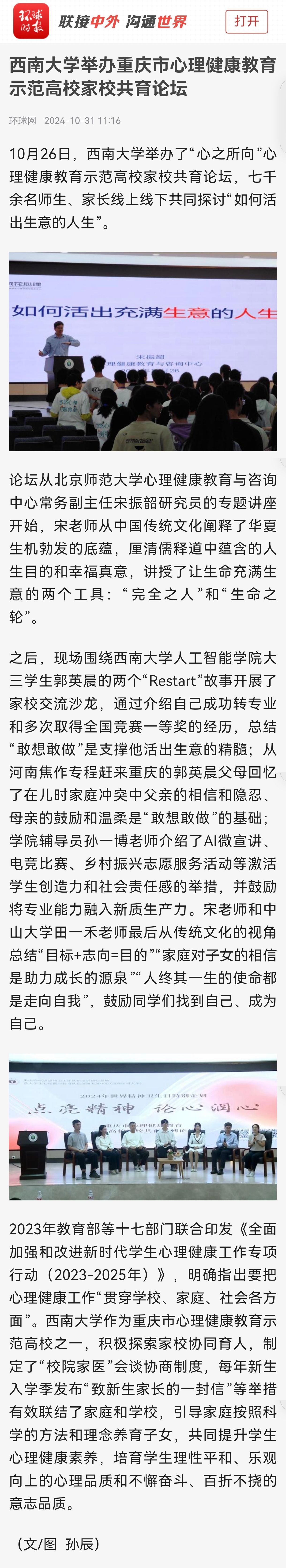 Betway必威西汉姆联官方网站举办重庆市心理健康教育示范高校家校共育论坛