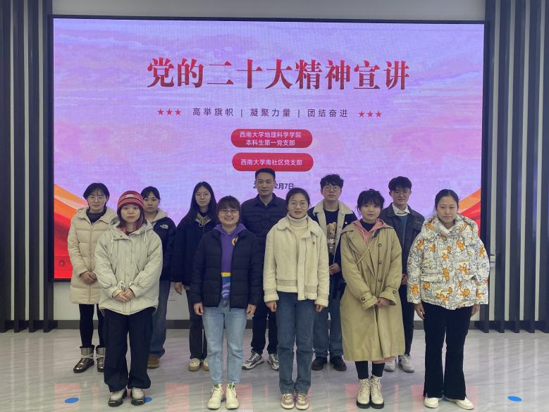 自1月13日以来,宣讲团历时37天,在11个社区、3所学校、3个村委会和2个企业单位陆续开展宣讲19场,覆盖受众450余人。宣讲内容丰富,重点突出,既有政治高度、思想深度,又有理论温度、实践厚度,让党的创新理论“飞入了寻常百姓家”。下一步 ,地科科学学院党委将继续全面深入学习贯彻党的二十大精神,强组织、搭平台、聚合力、增效能,学用结合、知行合一,真正把学习贯彻党的二十大精神转化为奋进新征程、建功新时代的强大动力。