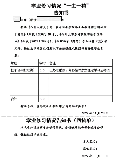 家校协同“云档案”。建立学业修习情况“一生一档”,将个人档案通过在线途径发送至学生个人及其家长。通过学院主导、家校协同,激发全员内生动力,促进家校合作成效。目前已建立学业修习情况总台账,送达学业修习情况“一生一档”告知书近20份,每日进行家校沟通。