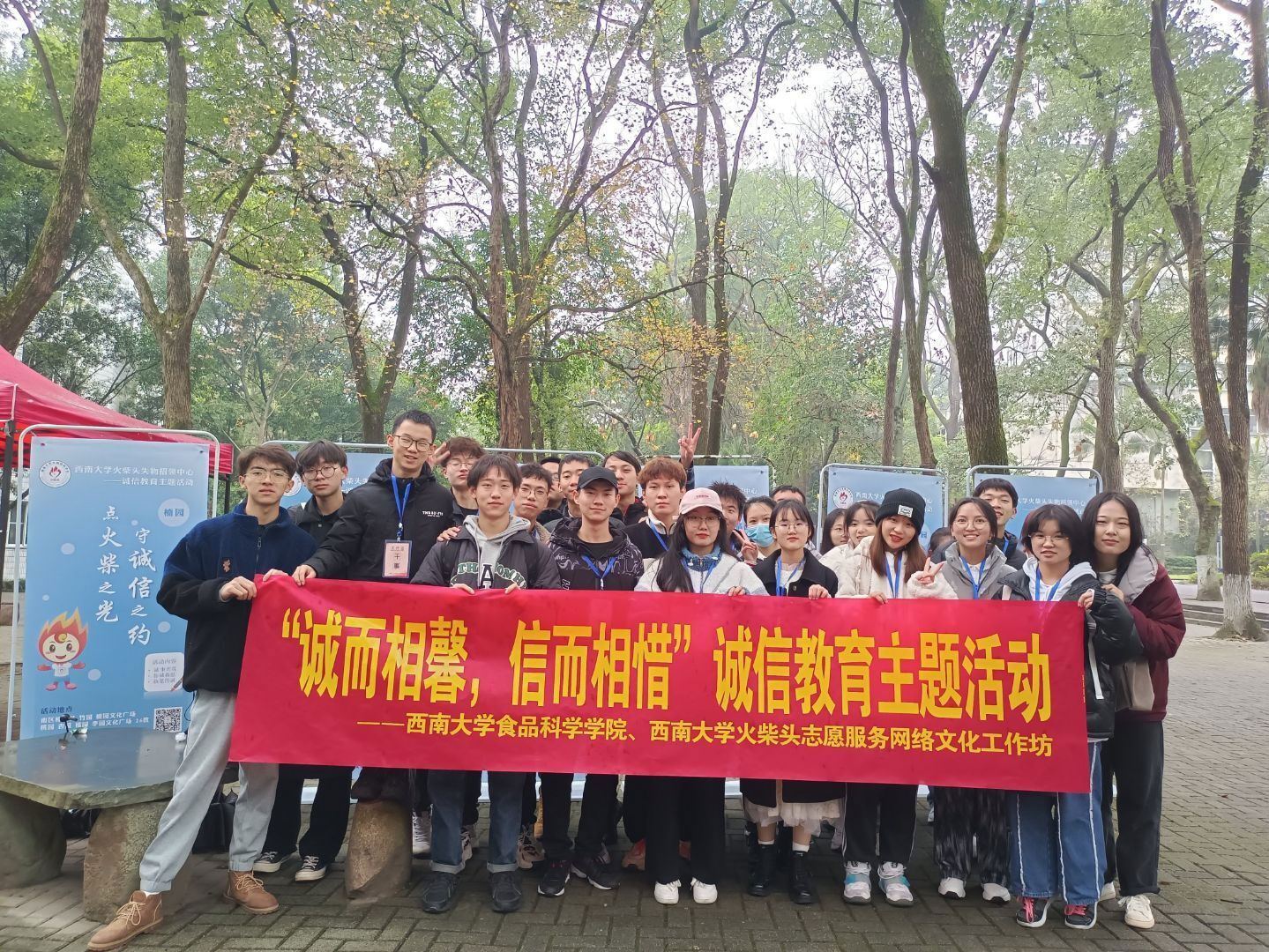 为深入贯彻落实高校立德树人的根本任务,扎实推进“感恩、励志、诚信”三项教育,进一步加强大学生诚信教育,近日食品科学学院“诚而相馨,信而相惜”诚信教育主题活动在南区樟树林成功举办。