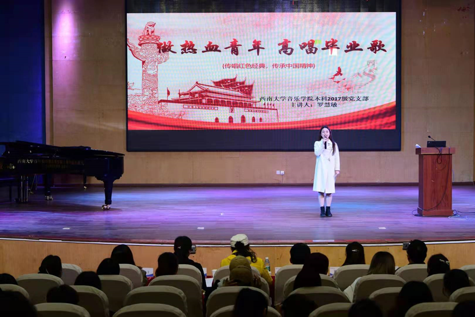 由学院各党支部和学生“主旋律”宣讲队推荐的12组参赛选手进行了精彩展示。他们将历史故事引入课堂教学,将歌曲教唱与党史学习紧密结合,从国际共产主义运动到《国际歌》到“红船精神”、从江姐狱中故事到《绣红旗》到“红岩精神”……多形式的讲述和讲解激发了听众的强烈共鸣,深刻体会了蕴含歌曲中的精神内涵,更加准确地掌握了作品的演唱方法与情感表达。