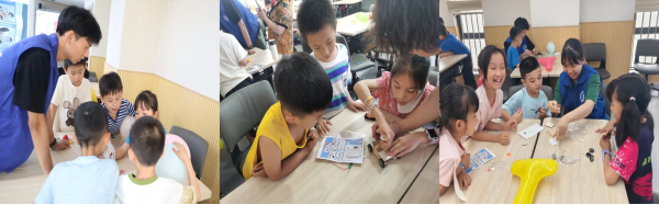 在智感交融的AI体验环节,通过AI绘图作诗、智能识别等形式,展示了人工智能大模型的交互应用。在志愿者的帮助下,小朋友们亲手组装的小车随着指令下达成功跑动,孩子们的欣喜之情溢于言表,纷纷竖起大拇指,“AI又聪明又博学,真是太神奇了!”