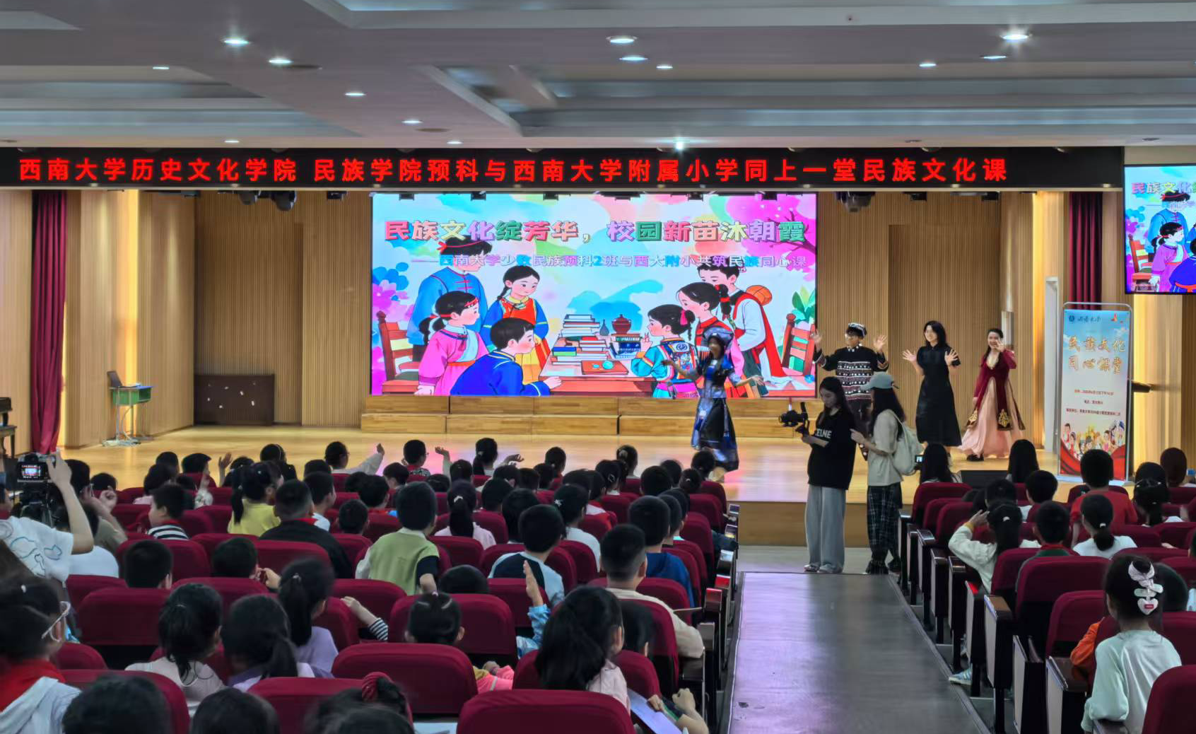 为深入推进大中小学思想政治教育一体化建设,引导小学生们感悟灿烂的中华民族文化,加强铸牢中华民族共同体意识教育。2025年4月11日,历史文化学院 民族学院少数民族预科与Betway必威西汉姆联官方网站附属小学共上一堂以“民族文化绽芳华 校园新苗沐朝霞”为主题的民族文化思政大课。本次活动通过“民族文化共讲”“民族故事共听”“民族游戏共乐”“民族团结手语舞共学”等丰富环节,为西大附小三年级330余名小学生带来了一堂生动精彩、别开生面的民族文化体验课,大小朋友携手共绘民族团结同心圆。