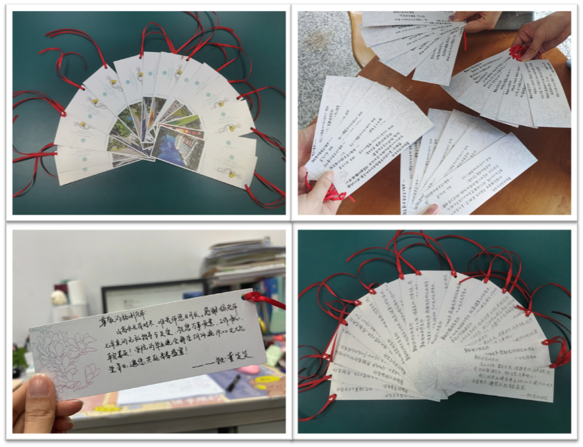随后,学生代表们怀着敬意,将这些饱含心意的明信片亲手送到老师们手中,邀请老师们参加毕业晚会。老师们收到明信片后,脸上洋溢着欣慰的笑容,纷纷表示感受到了学生们的用心,十分期待在毕业晚会上与同学们相聚,共赴青春盛宴!