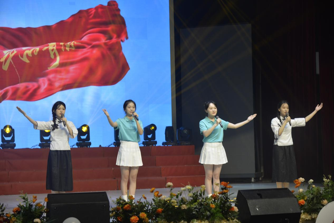 第二篇章“热播中:青春正当时”以热辣的爵士串烧开场,舞台光影与动感节拍交相辉映,学生们用热辣舞姿展现青春的张扬与个性。在节目《青春扬帆正当时》中,四位朗诵者以激昂的语调、饱满的情感,抒发了新时代青年的责任担当与对未来的憧憬。