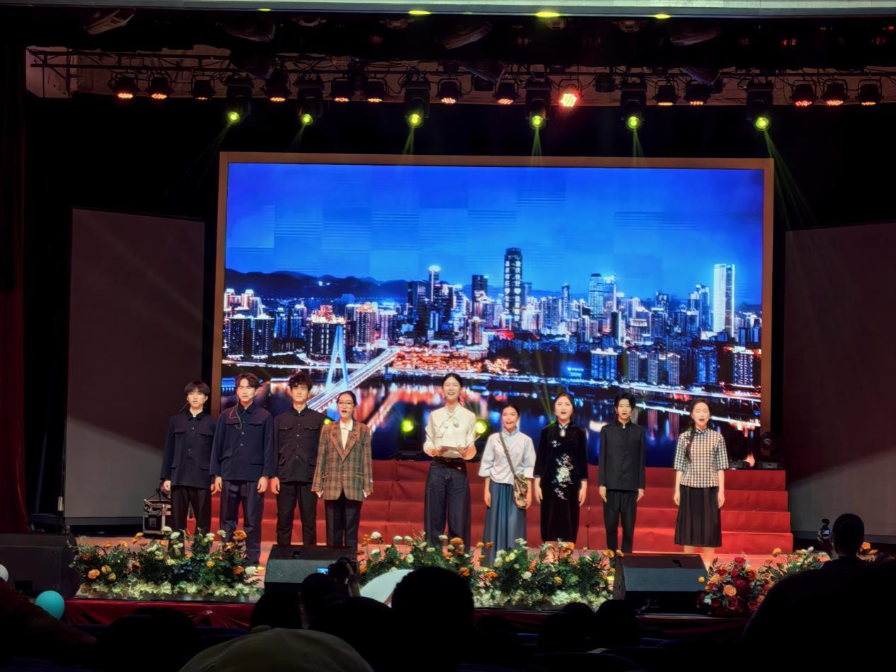 在第三篇章“待续集:青春不散场”中,学院原创话剧《时光里的山城魂》将现场观众带回重庆大轰炸期间的川东师范学堂、吴明珠院士孕育重庆瓜种的新疆吐鲁番戈壁、千万根棒棒撑起的朝天门,将重庆的历史文脉与当代青年的责任担当交织呈现,彰显山城精神的传承。舞蹈《玫瑰人生》用肢体语言诠释“热爱可抵岁月漫长”的主题,演绎脚尖浪漫。就职于重庆广电的优秀校友阙雨萱的分享聚焦“人生新阶段的迷茫和选择”,她鼓励学子“在喧嚣中坚守本真,在变化中追求进步”,以持续的学习成就更好的自己。