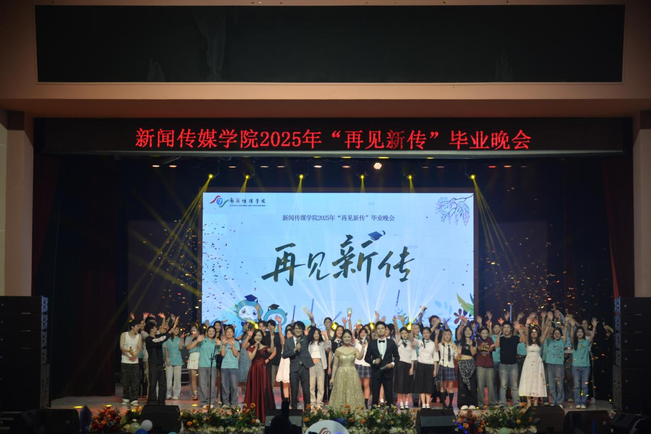 晚会在歌曲《如果我们不曾相遇》和《想见你》演唱中圆满落幕,全体表演人员共同唱响离别与重逢的乐章,舞台上下泪光与微笑交织,定格成青春最动人的注脚。这场毕业晚会不仅是对大学时光的深情告别,更是新闻传媒学院学子迈向新征程的起点。愿他们带着母校的期许,以“铁肩担道义,妙手著文章”的情怀,在更广阔的天地间书写属于自己的青春答卷。