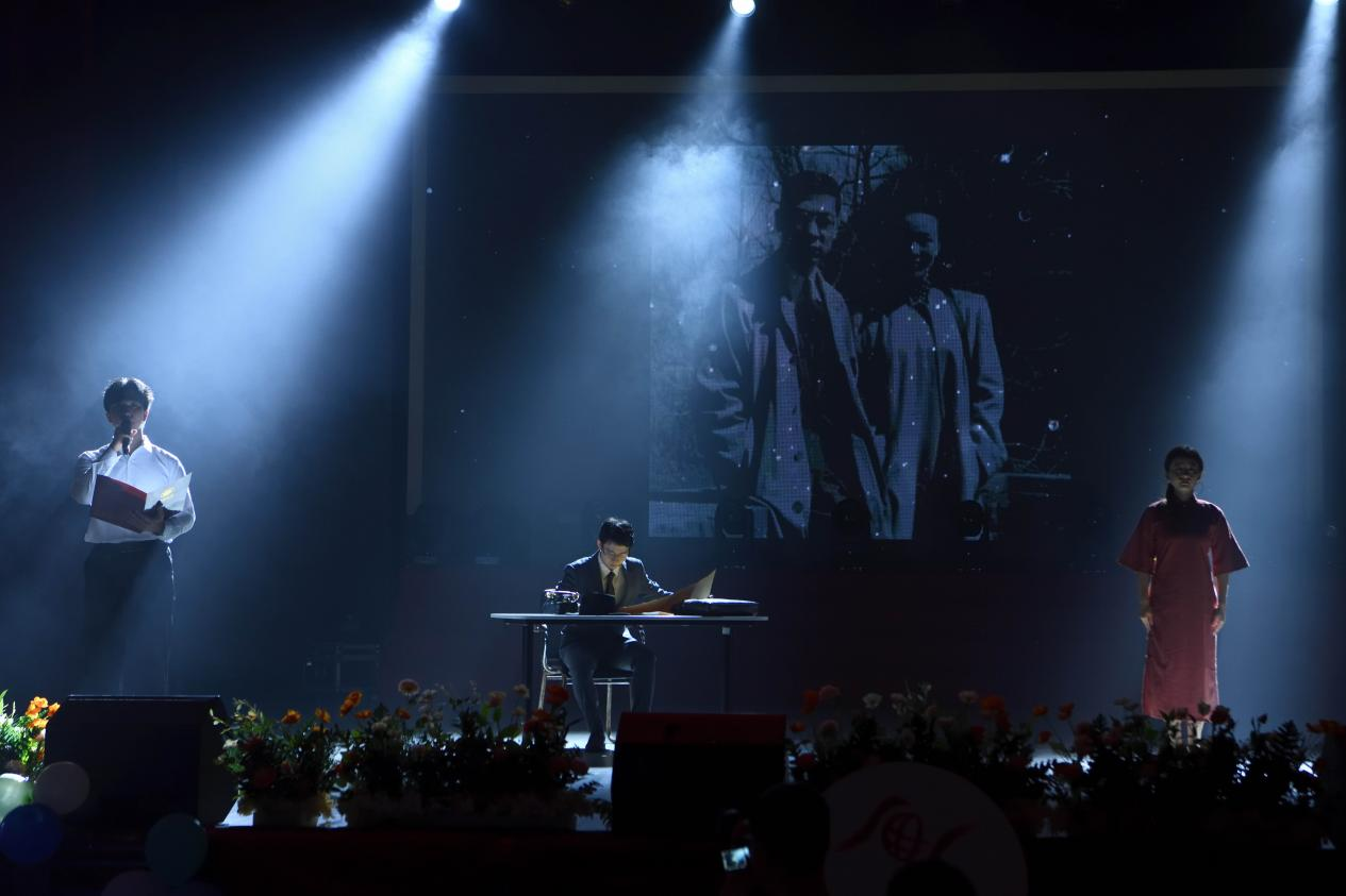 开场舞《The Chase》以动感节奏点燃全场,活力的舞姿诠释着青春的跃动。在师生联唱《世界赠予我的》的歌声中,第一篇章“预告片:青春未命名”正式开启。当师生情谊与同窗友情被融入旋律,现场观众跟随着歌声回溯大学时光的温馨点滴。舞蹈《Candy》则以俏皮风格展现青春的甜蜜与朝气,舞者们用轻快舞步赢得阵阵欢呼。学生原创声优剧《星火归途》重现“两弹一星”元勋郭永怀波澜壮阔的人生史诗,展现了学院不断深耕“传媒+思政”的育人模式,将专业学习、思政教育、实践教育有机融合,产出了一系列优质的歌颂党史、新重庆精神、“两弹一星”精神等“红色文化原创作品”。就职于中央广播电视总台财经频道的优秀校友代表刘丽寄语学弟学妹们:坚持梦想,脚踏实地,在追求梦想的道路上保持正直、真诚、善良,践行青年人的使命和担当。