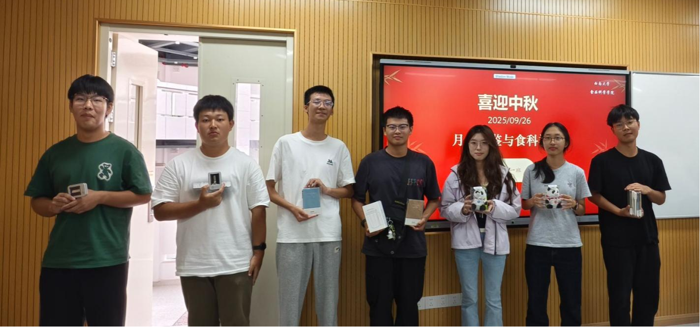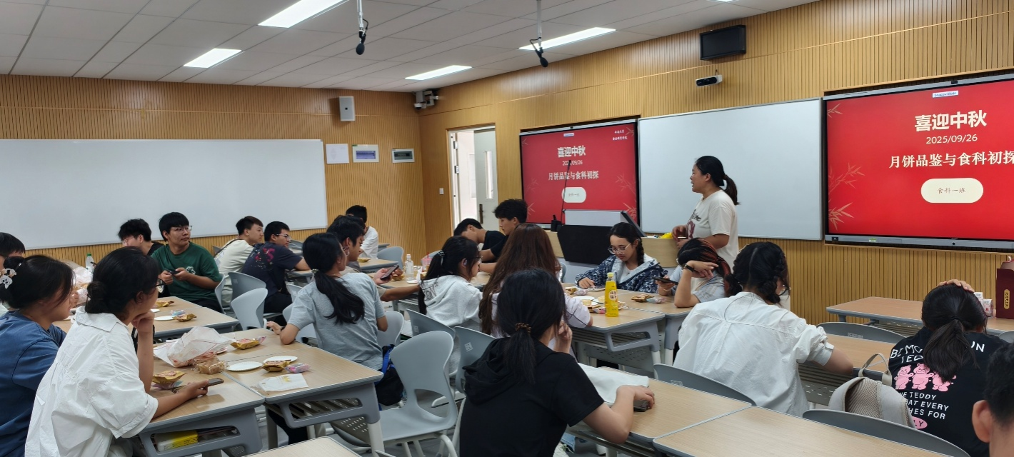 为弘扬中华优秀传统文化,增强班级凝聚力,提升大一新生对食品科学的兴趣与认知。2025年9月26日下午,2025级食品科学与工程类1班在班主任任丹老师的带领下,成功举办了“喜迎中秋·月饼品鉴·食科初探”主题班会活动。活动围绕中秋节文化背景、月饼制作工艺及食品添加剂等科学知识展开,内容丰富,形式新颖,深受同学们欢迎。