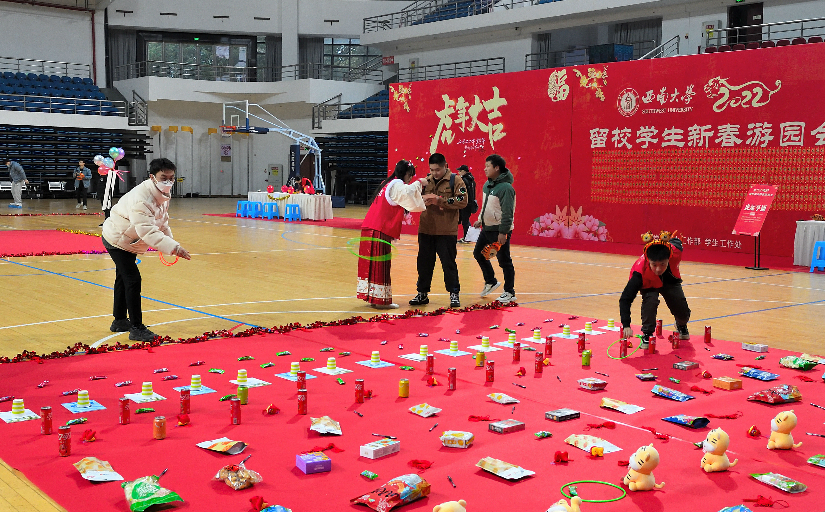 寅虎贺岁迎新春,欢喜游园过大年!1月31日上午西南大学中心体育馆喜气洋洋,热闹非凡,留校师生欢聚于此,共同参加一场充满年味的新春游园会。