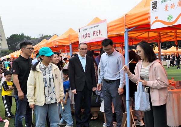在主题活动现场,三个心灵创意集市热闹非凡,“童年有趣市”聚焦童年回忆,趣事自愈;“成长无难市”探索成长力量,披荆斩棘;“生命进行市”发掘生命真谛,奋翅鼓翼,从侧面体现了心灵创意集市活动从时间维度贯穿过去、现在、未来的人生旅程,又以我与自己、我与他人、我与自然的关系维度,积极培育大学生的大爱精神。