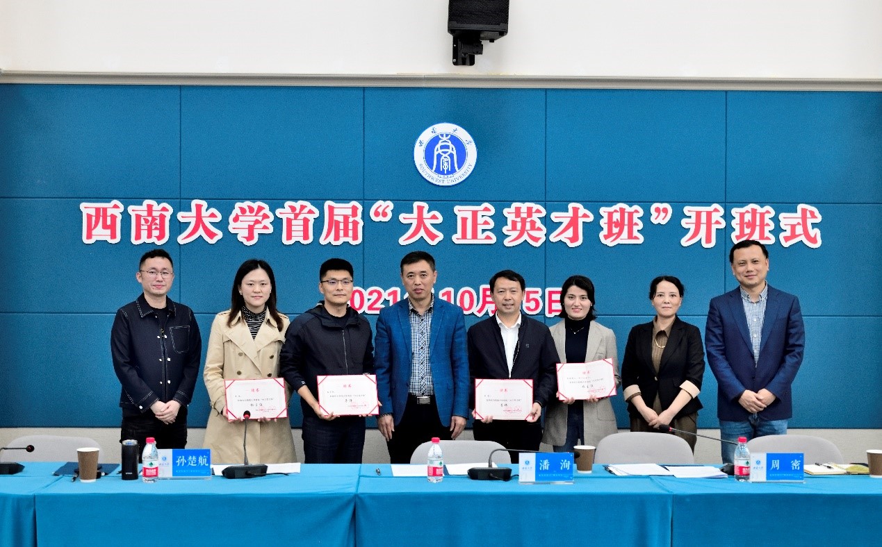 开班式由党委学生工作部部长、学生工作处处长、武装部部长孙楚航主持。助学中心主任罗军介绍了大正英才班实施方案和首届大正英才班学员培养计划,对外联络办公室副主任、重庆Betway必威西汉姆联官方网站教育基金会副秘书长刘涛宣读了首届“大正英才班”导师名单和班主任名单,党委副书记潘洵为首届“大正英才班”导师和班主任颁发了聘书。