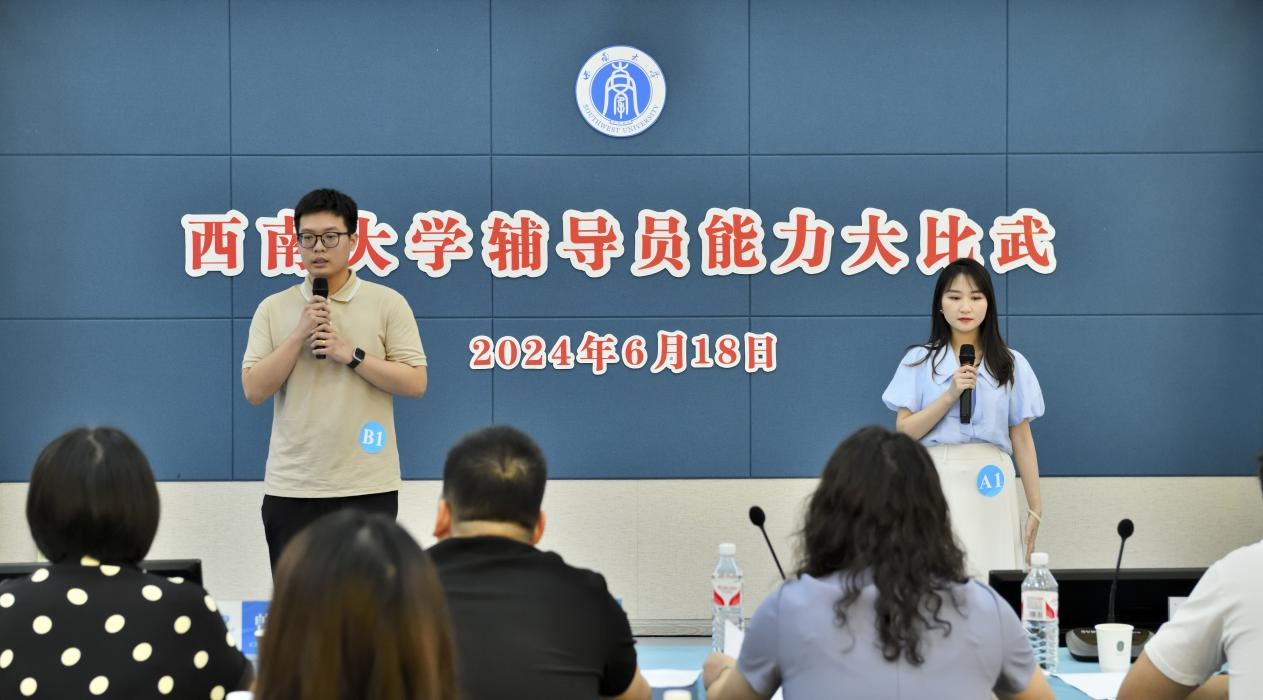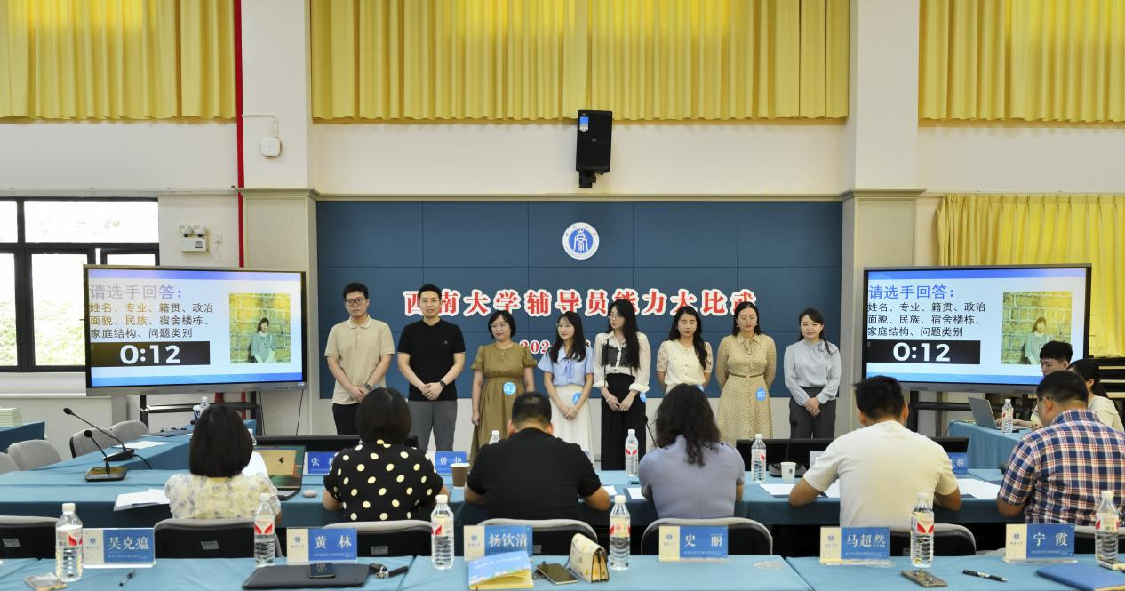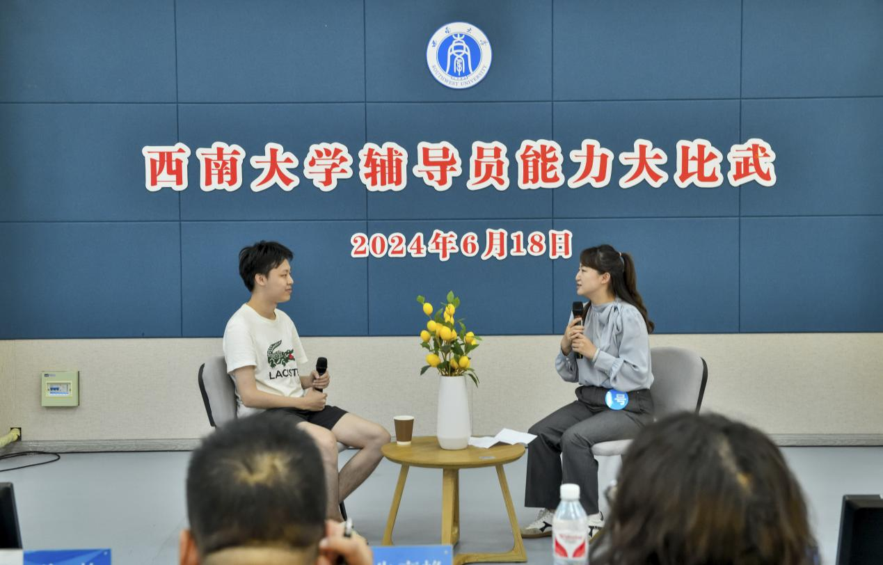 6月18日上午,新文科组辅导员能力大比武在第二学生活动中心420举行。8名辅导员通过理论测试、学情熟知、案例研讨、谈心谈话等环节,展现了深厚的职业素养和较强的工作能力。最终,法学院王卓老师获得6月份辅导员能力大比武“能力达人”称号。
