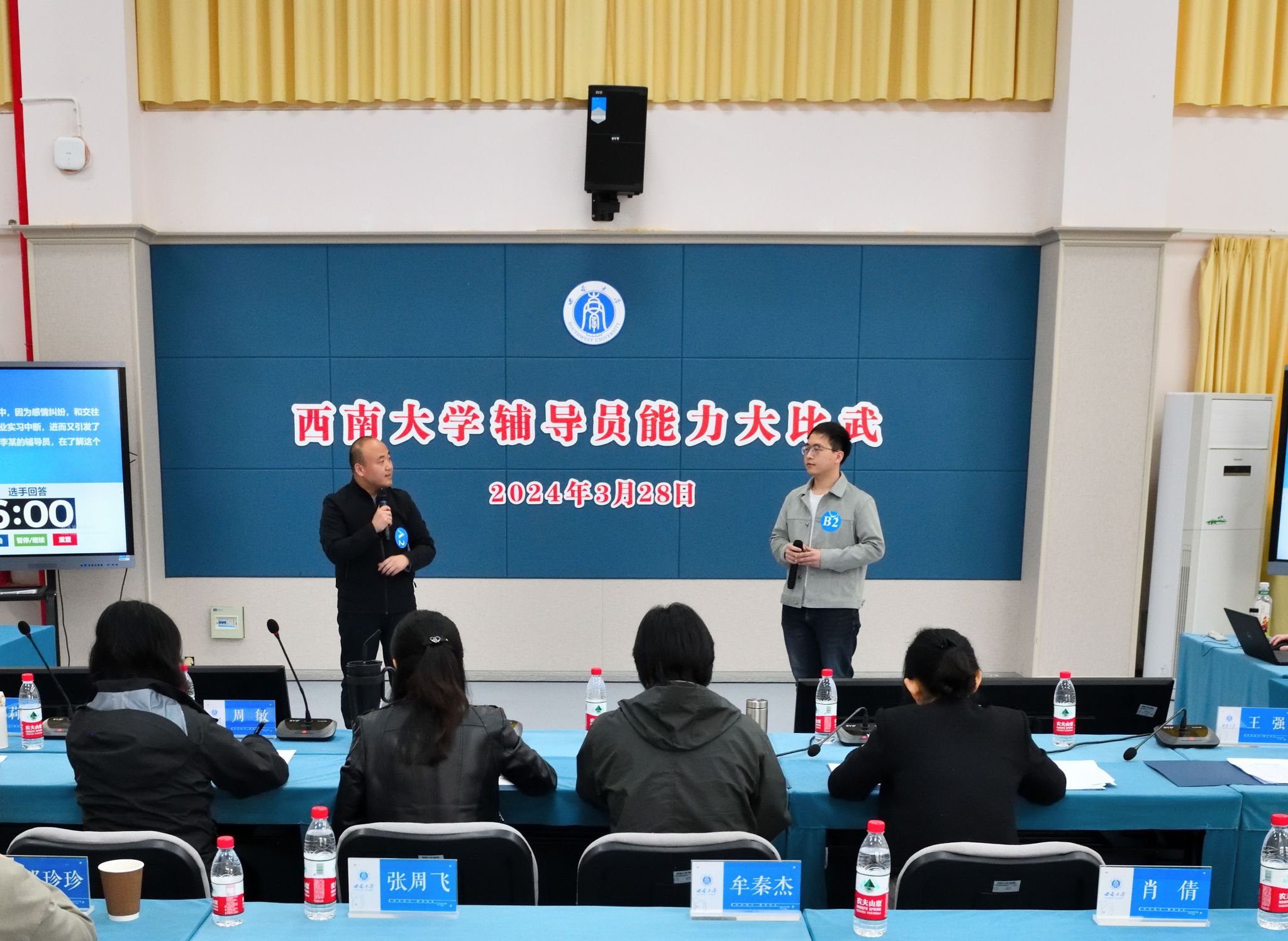 能力大比武分为理论测试、学情分析、案例研讨、谈心谈话四个环节。参赛辅导员围绕学生就业、寝室矛盾等具体案例开展研讨分析,针对学生学业发展、人际交往等主题进行谈心谈话,在实战演练中提升自身的理论素养和业务能力。资源环境学院牟秦杰获得3月份辅导员能力大比武“能力达人”称号。