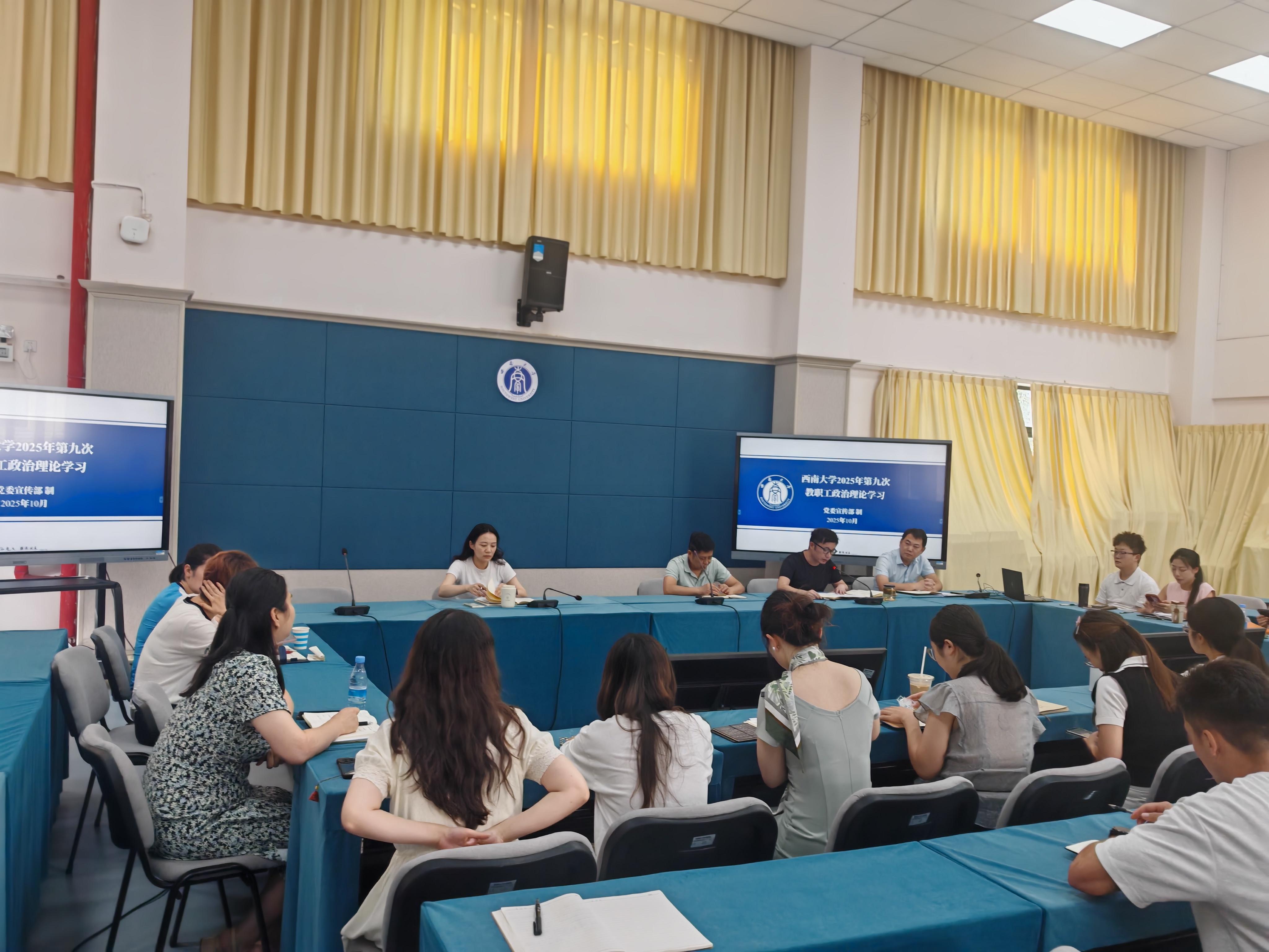 10月10日,党委学生工作部在第二学生活动中心420会议室组织开展第九次教职工政治理论学习。会议由党支部副书记罗军主持。邱蔚同志领学习近平总书记在中共中央政治局第二十二次集体学习时的重要讲话精神,以及《求是》杂志发表的习近平总书记重要文章《中华民族共同体的形成和发展是人心所向、大势所趋、历史必然》。阿司亚同志领学习近平总书记给天津大学全体师生的回信精神,以及《中国共产党思想政治工作条例》的主要内容。吴东倩同志领学《Betway必威西汉姆联官方网站学术不端行为调查处理实施细则》和高校科研经费规范使用相关文件。全体教职工观看了“AI+WPS智能办公新体验”推广系列视频(第一期),了解智能办公工具在提升工作效率、服务师生方面的应用。