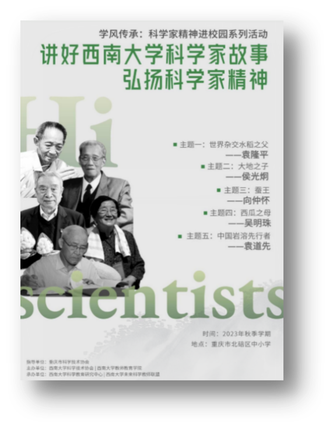 以“宣讲实践+课题研究+科普创作”为主线,构建“学—研—创—评”闭环培养链。宣讲实践方面,组织学生深入重庆34个区县开展科学家精神宣讲、科普知识讲座共89场,覆盖师生2万余人。