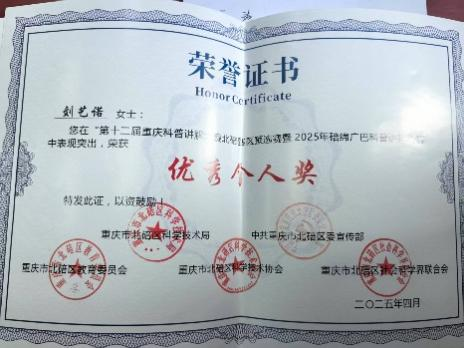 图7.推选刘艺诺和肖相睿参加北碚区科普讲解大赛并获奖