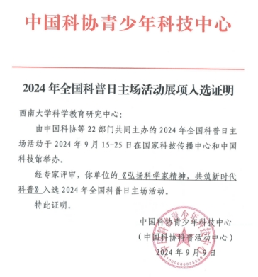 图2. 2024年全国科普日主场活动入选证明