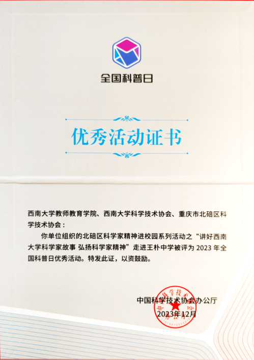 图1. 2023年全国科普日优秀活动证书